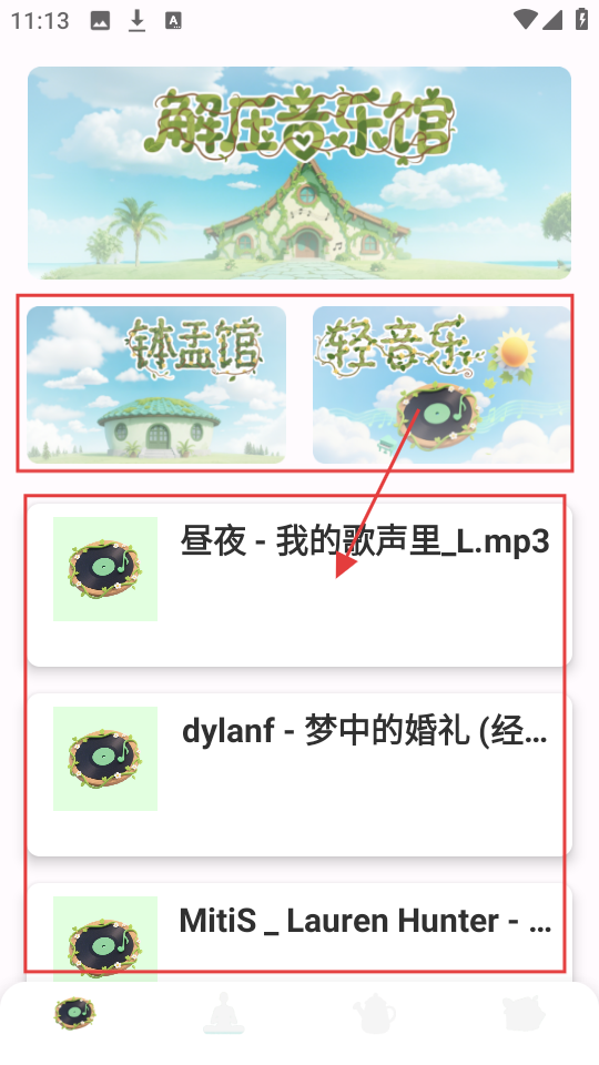 1、解压无忧馆有【钵盂馆】【轻音乐】等分类,选喜欢的音乐进行收听超解压。