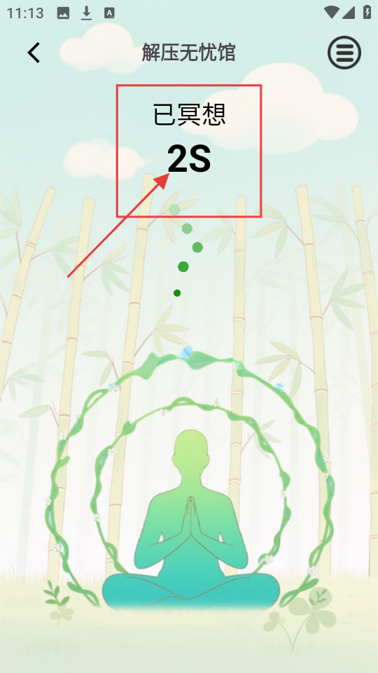 4、进入冥想,能看到“已冥想2S”,静静冥想,感受身心放松,解压效果超赞。