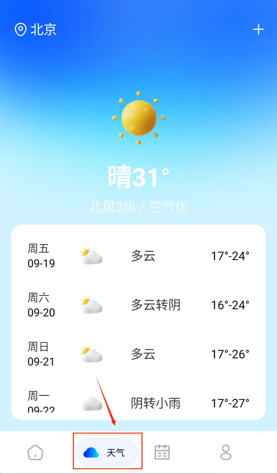3、天气预报,提供目的地实时天气情况与未来预报,帮助用户根据气候条件准备行李并合理安排行程。