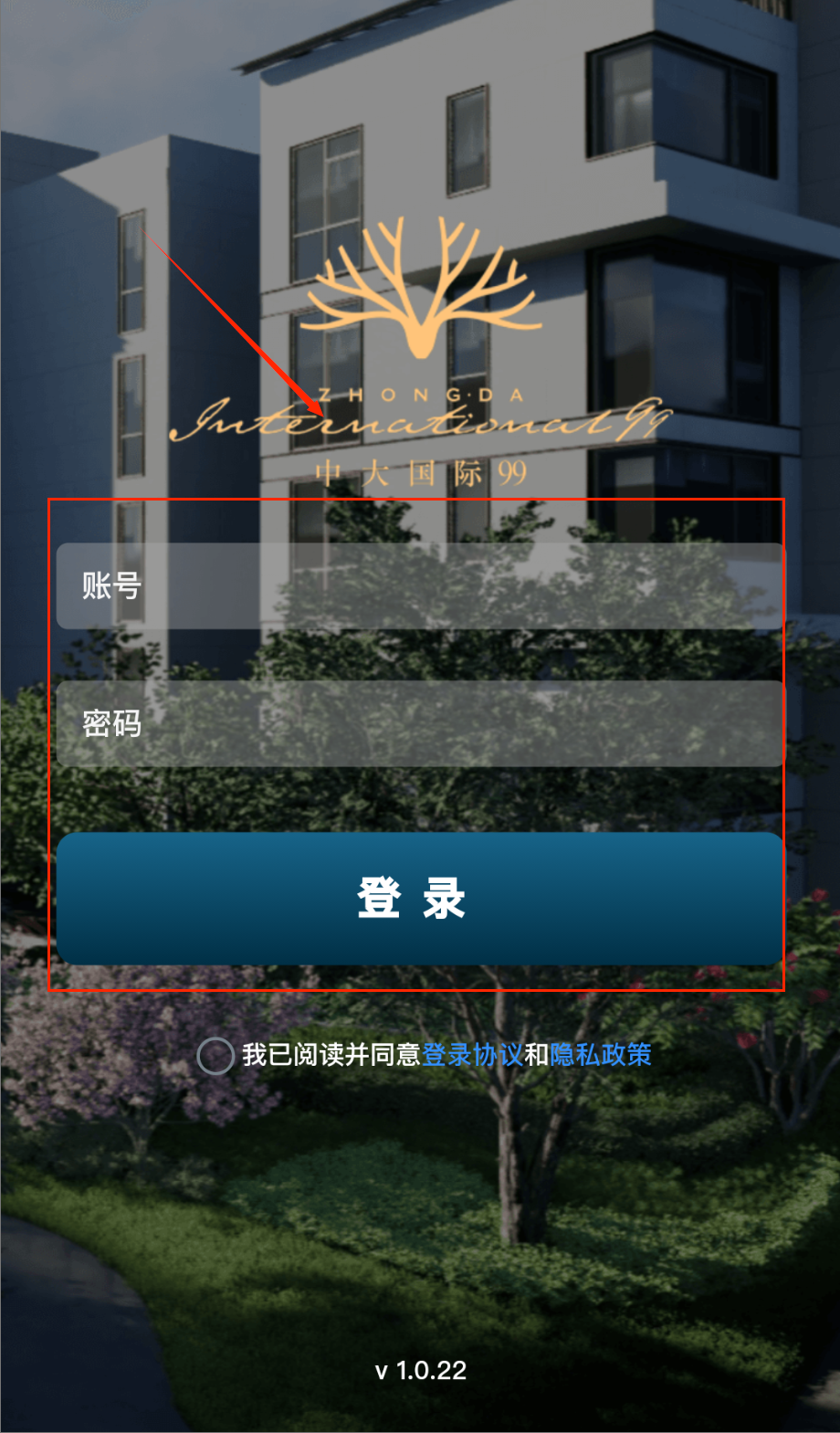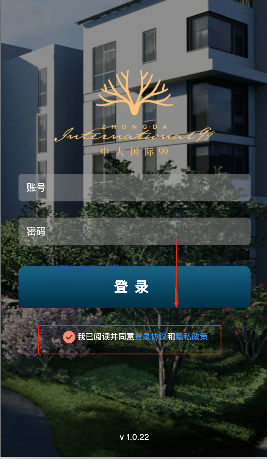 2、 注册登录要仔细呀,打开APP看到灰白建筑背景的登录页,在“账号”框填管理处授权的手机号,“密码”框输初始密码(首登后要改)。
