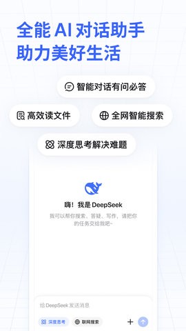 手游deepseek作为一款由杭州深度求索人工智能基础技术研究有限公司开发的人工智能服务软件。这作为一款能和国外顶级AI比肩的国产AI大模型,一经上线便在国内外引起了巨大的轰动。它具备一流的聊天交互、代码编写能力,唯一的缺点是无法直接进行AI绘图,欢迎下载尝试。