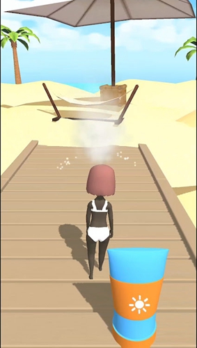 《晒黑跑步》玩家可以在这里随意体验游戏,在游戏中自由的进行闯关,在沙滩上玩家可以沐浴阳光,享受游戏带来的乐趣,玩家在游戏中把自己晒黑,越黑越好,这样才能获得更过的游戏奖励,游戏的目标就是把自己的变得跟非洲人一样,在太阳跑酷才是最直接的方式。