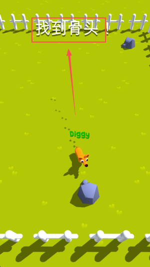 3、然后,继续挖掘直到找到骨头,完成关卡目标。