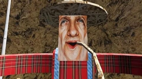 第三个:就是你被老奶奶绑在凳子上,然后四周农夫对你挖掘机里腌萝卜,等完全包围后,你就被点燃烧死了。