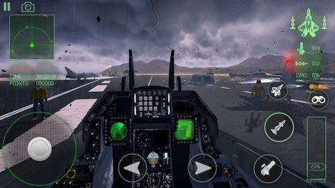 屏幕左侧虚拟摇杆控制飞机翻滚和俯仰,右侧控制油门和特殊武器。这是最传统、最硬核的方式,操控精确但上手较难。