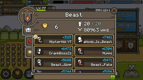 城堡的塔楼可以成长,每一层都可以放置英雄,金钱越多就可以购买更多英雄和装备了。
