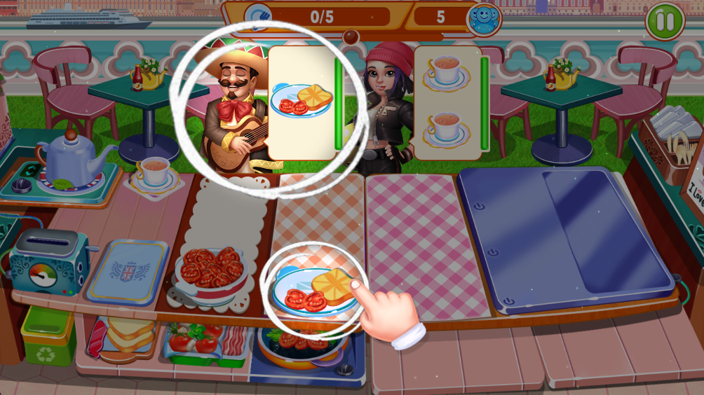 2.等待烹饪完成之后点击,要注意烹饪的火候,如果烹饪时间过长会导致食材糊掉,这不仅会影响顾客的心情,同时也会影响餐厅的收益。