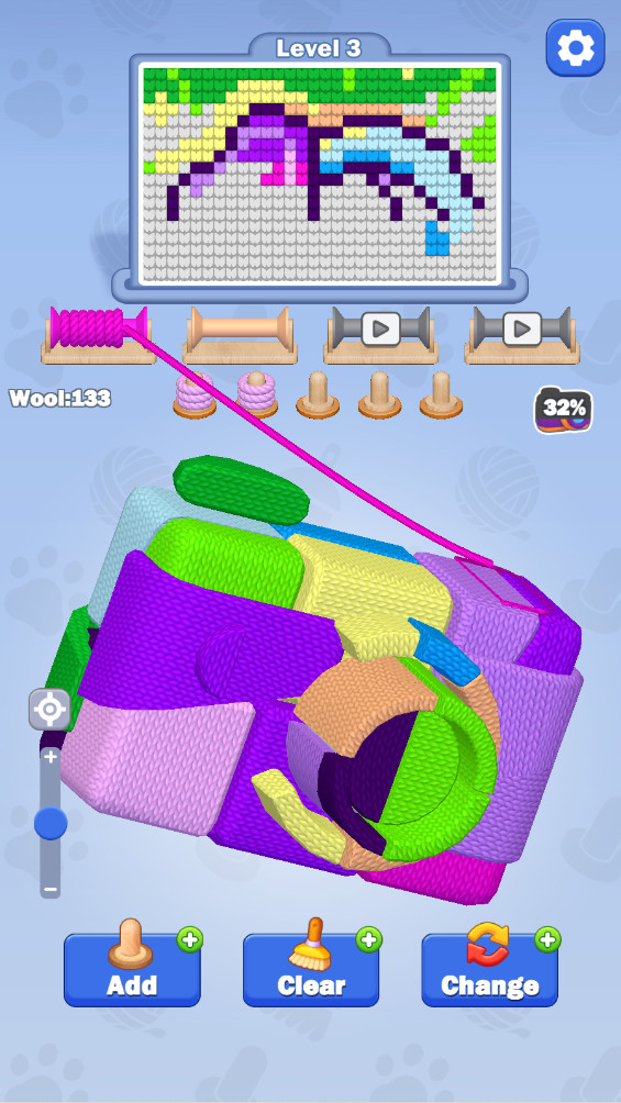 编织大师3D是一款融合了创意与策略的三维空间艺术解谜游戏,玩家将在这款游戏中进入一个色彩斑斓的毛线世界,通过巧妙的编织和解谜,创造出令人叹为观止的艺术作品。游戏不仅挑战玩家的逻辑思维,还激发他们的创作灵感,让每一个动作都充满艺术的可能。随着关卡的提升,谜题变得越来越复杂,考验着玩家的空间想象力和解谜能力。