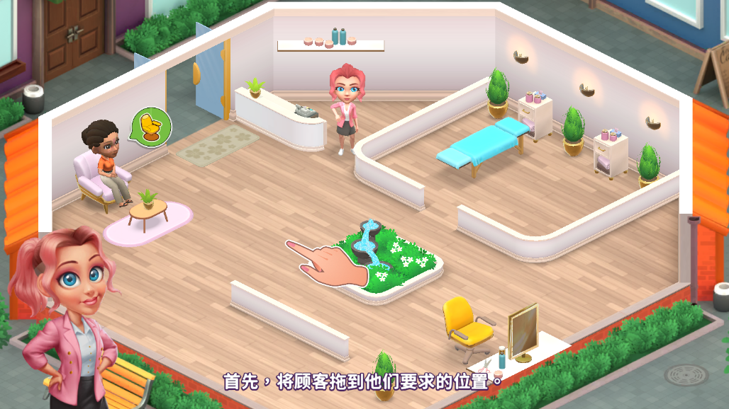 安宁水疗馆是一款充满创意与挑战的模拟经营游戏,你将成为一名水疗馆老板,负责从头开始打造并管理一个成功的美容帝国。你的任务是为每一位顾客提供最优质的服务,确保他们在放松和美容的过程中感到舒适愉悦,最终通过满足他们的需求让他们满意离开。随着游戏的进行,你将解锁更多的美容服务和专业设备,使得水疗馆的服务种类越来越丰富。