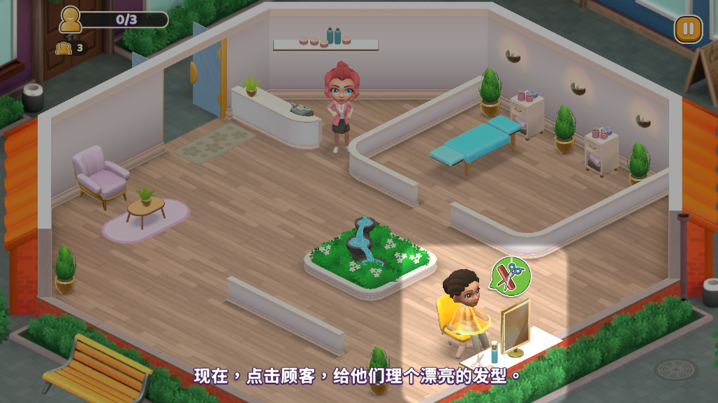 3.点击顾客进行理发。