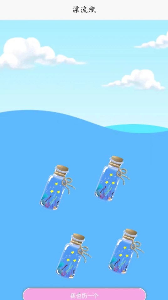 2、漂流瓶功能:软件的漂流瓶功能非常有趣。用户可以把自己的心情和想法写在漂流瓶里,然后扔到大海里。其他用户可以捡到漂流瓶,看到里面的内容,然后回复漂流瓶的主人。这种交流方式非常特别,让用户感到新奇和刺激。