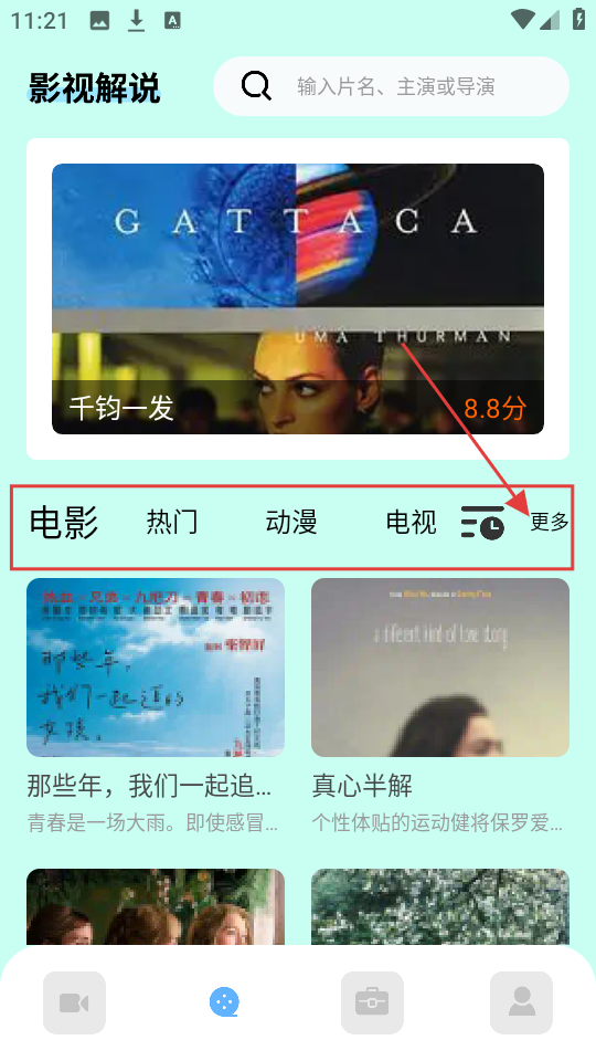 2、在影视解说页面,能看到不同分类,点【更多】,可以找到更多影视分类,方便找想看的内容。