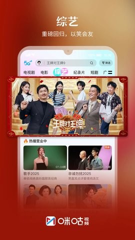 咪咕视频app是由中国移动旗下咪咕视讯科技有限公司推出的一款综合类视频直播软件,其内容覆盖体育、影视、综艺、直播等多个领域。平台更是拥有中超、英超、西甲、德甲、意甲、法甲、男篮亚洲杯、NBA、CBA等热门体育赛事版权,以及我们的河山暗潮缉凶等热播剧集,王牌对王牌9歌手2025等热门综艺,还有好莱坞大片、高分经典TVB剧集等丰富资源。
