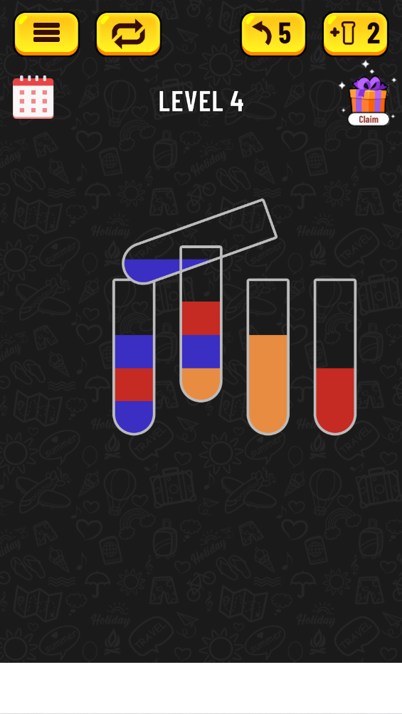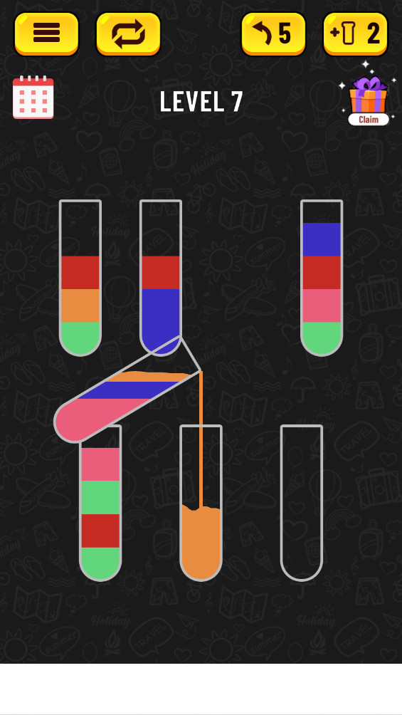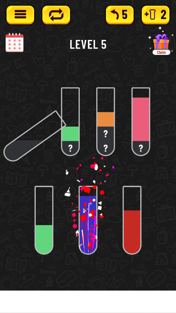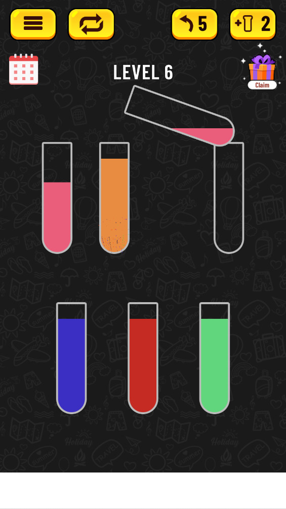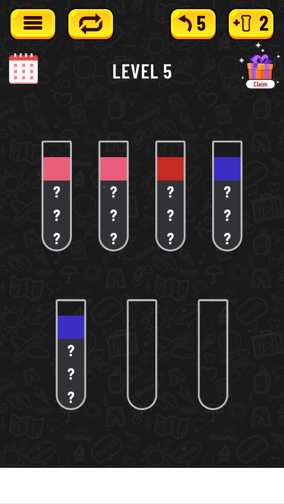 4.还有神秘的关卡,我们只知道瓶子第一层的液体,需要倒出第一层才能看见底下一层的液体,这就需要我们谨慎操作了。