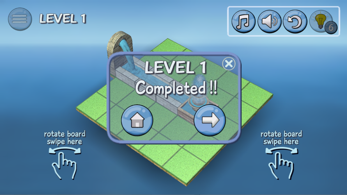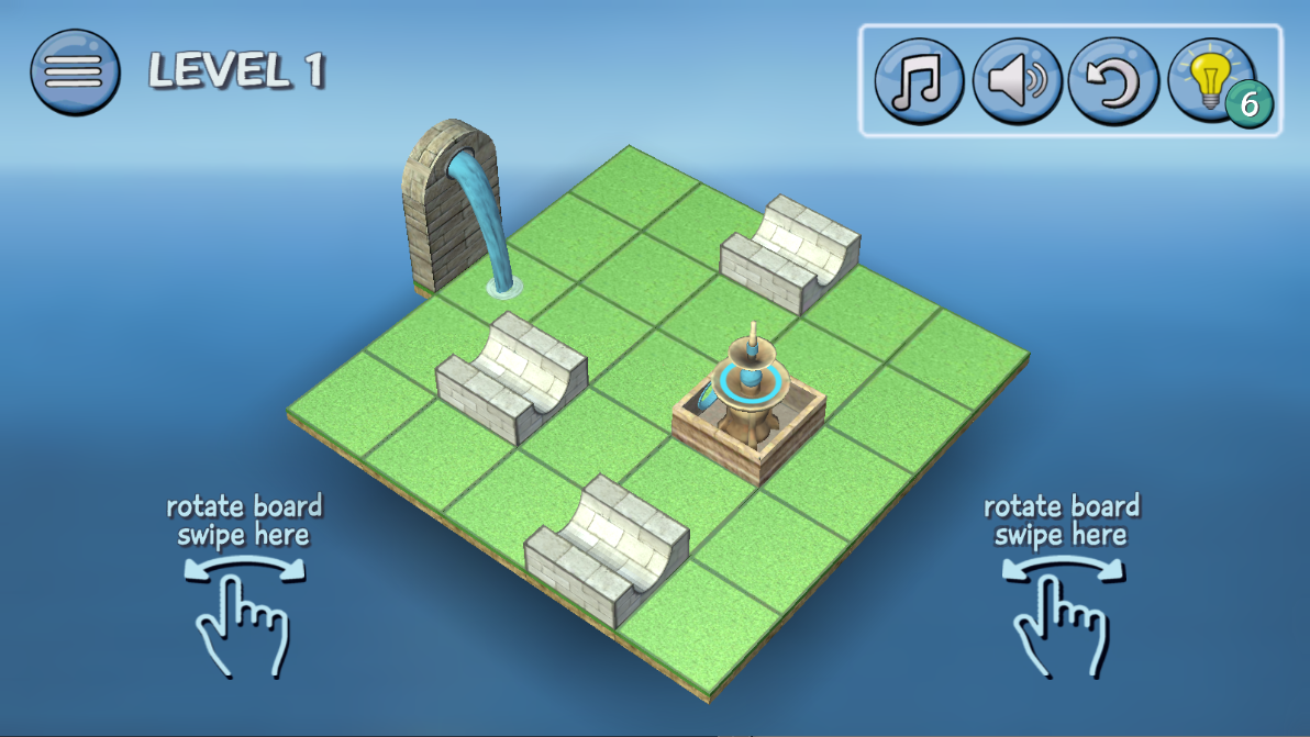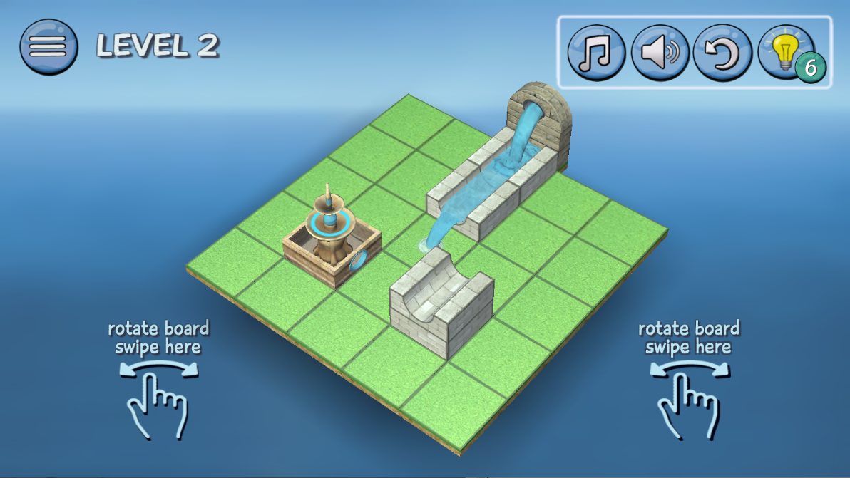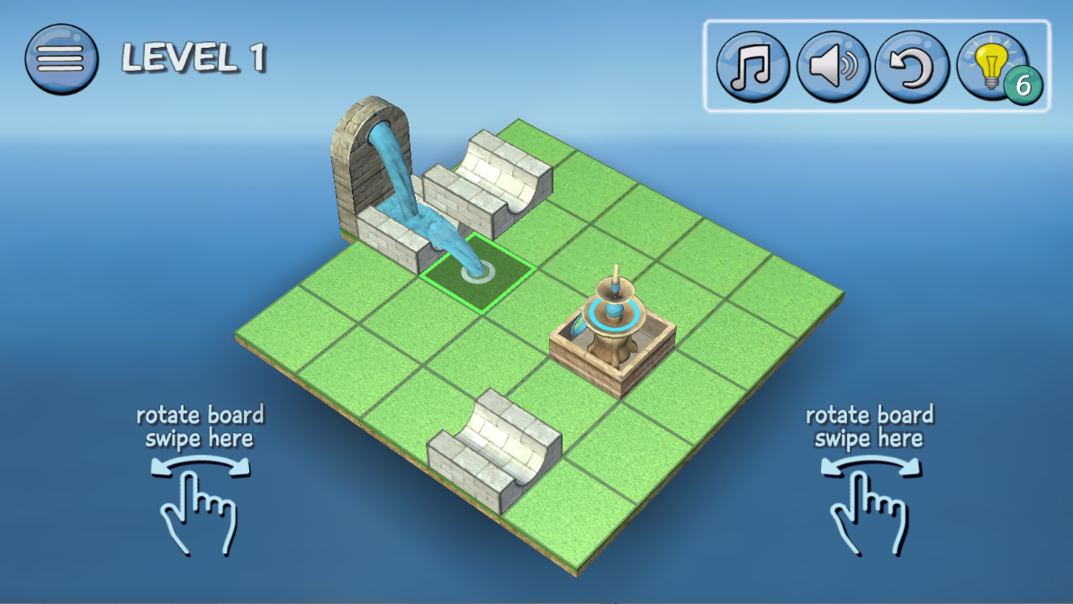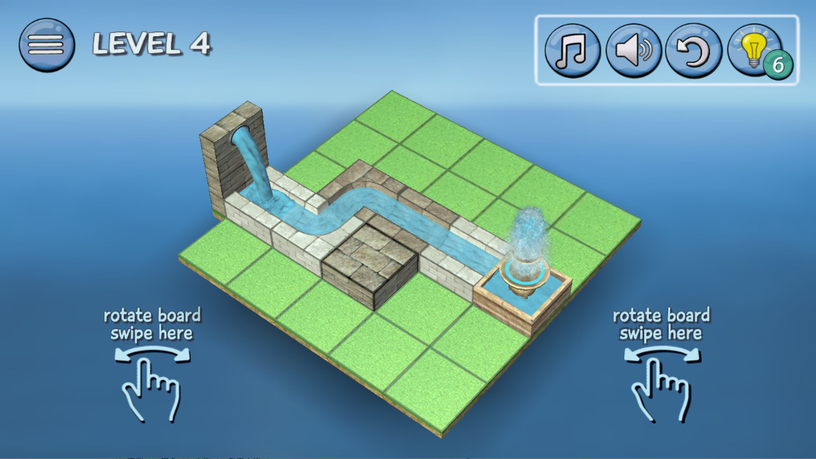 4.移动这几个白色的通道,让流出来的水顺利通过,到达喷泉。
