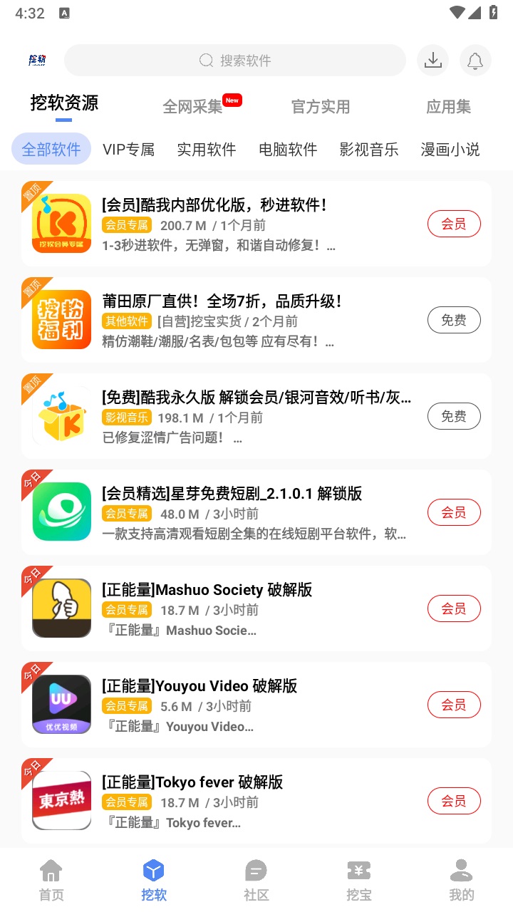 挖软app是一款宝藏软件库,这里有着各种非常实用的软件工具,比如实用软件、电脑软件、影视音乐、漫画小说、手机工具、生活日常、趣味搞笑等等。是一款人见人爱花见花开的一站式软件平台,汇聚了众多不同类型的软件,满足我们不同的需求,是一款宝藏神器。
