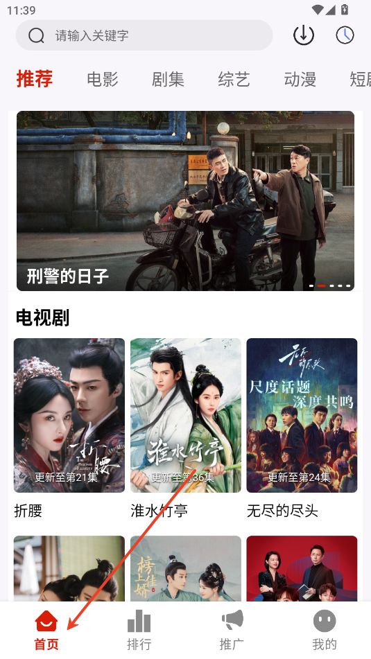进入首页,您可以看到最新上线的影视内容、热播剧集、电影和热门推荐。