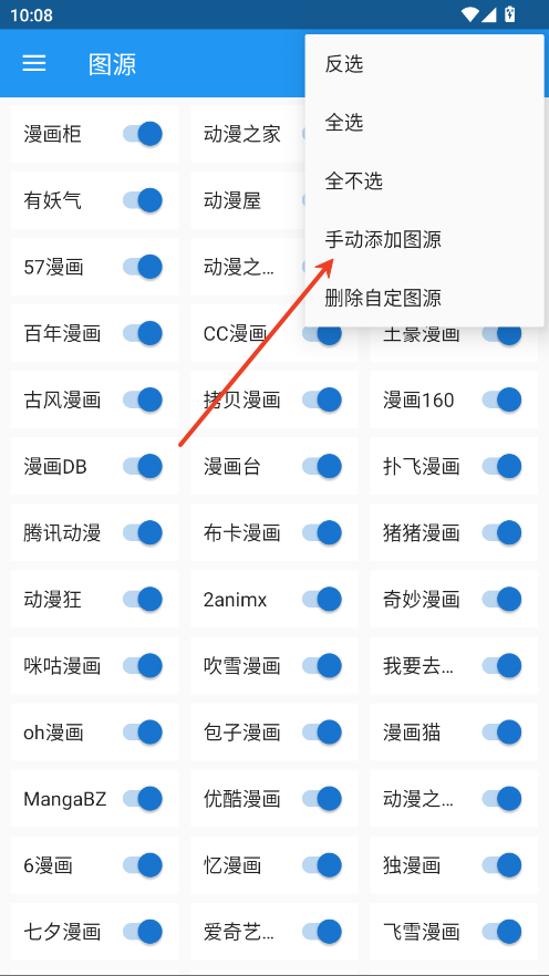 1.进入软件添加源后,软件是没有推送漫画的,需要搜索你想要看的漫画关键字。