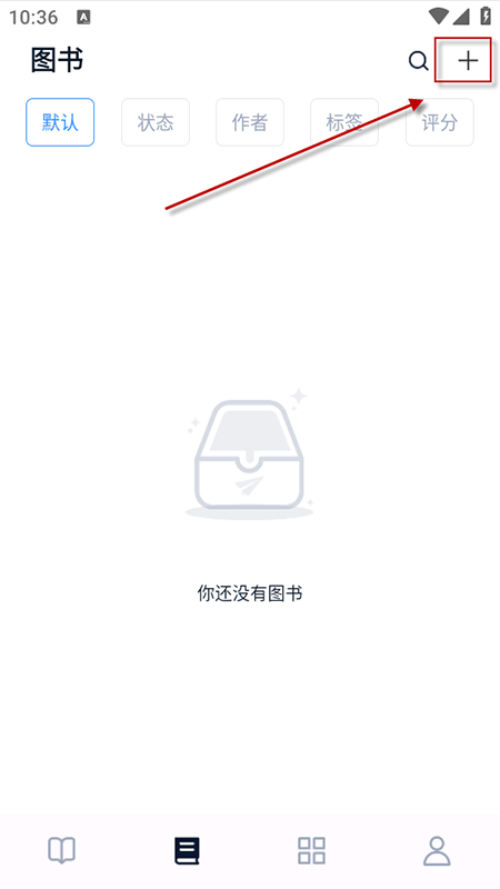 1.点击下方第二个选项进入图书界面。右上角+号选项,有三种导入方式,分别是本地导入、wifi传书和在线传书。