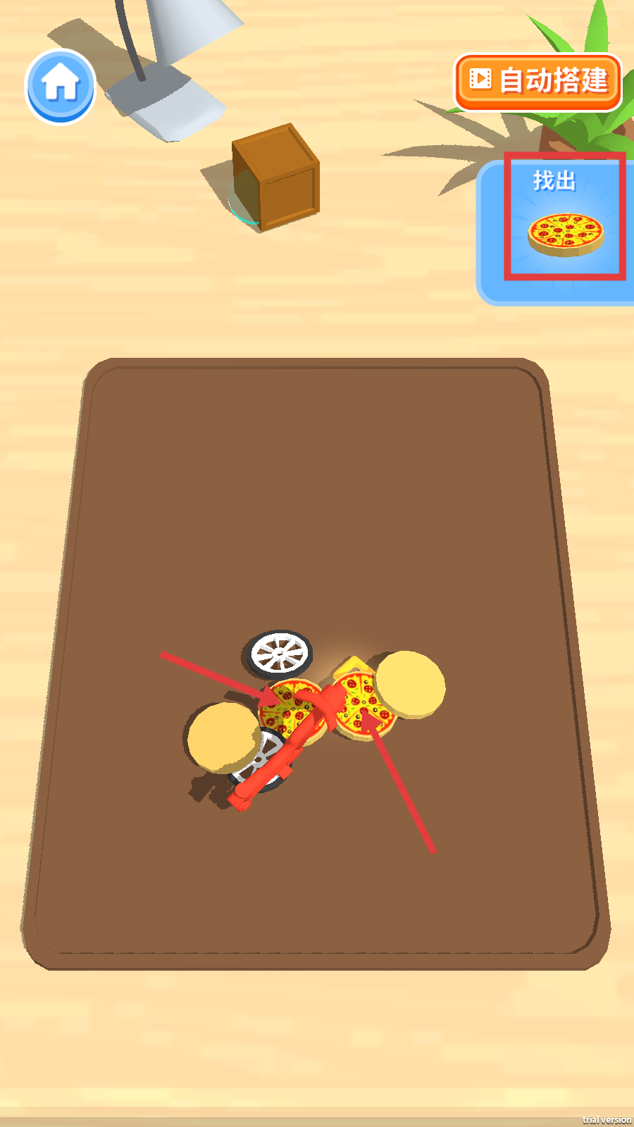 2、游玩中需根据右侧提示【找出】对应的披萨积木,仔细观察场景内物品来寻找。