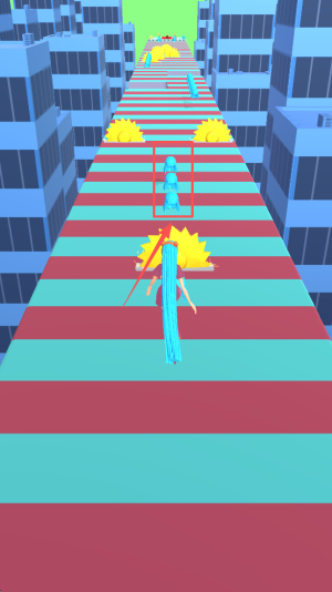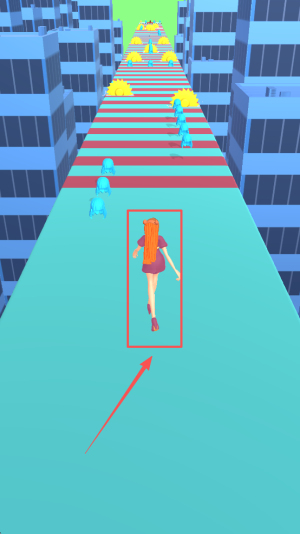 2、操控角色前进:控制小姐姐在赛道上跑酷,通过滑动等操作调整角色位置,避开易绊倒的危险区域。