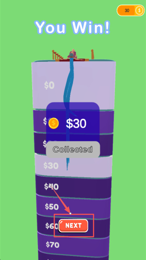 4、完成游戏领取奖励。到达终点后,点击“NEXT”领取你的奖励。