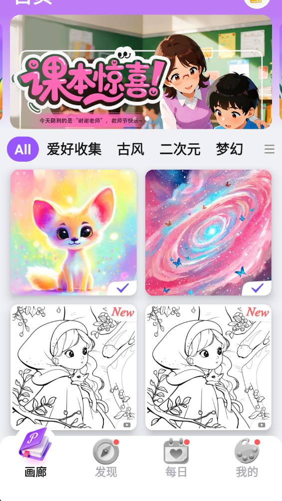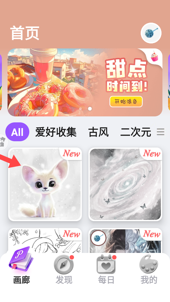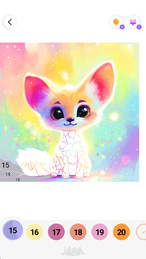 1.在首页界面中,选择喜欢的图案(如带有狐狸的图案),点击进入涂色环节。