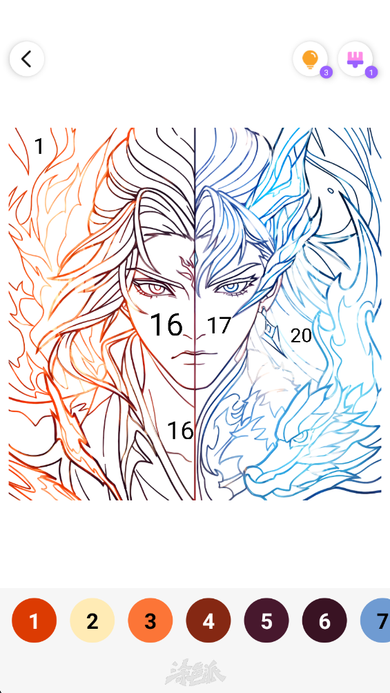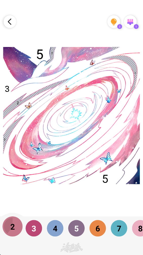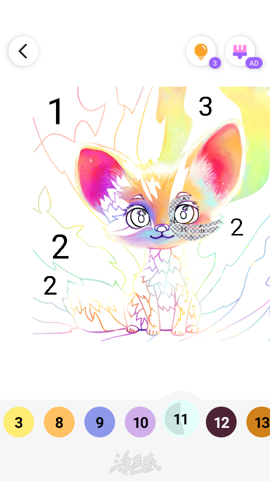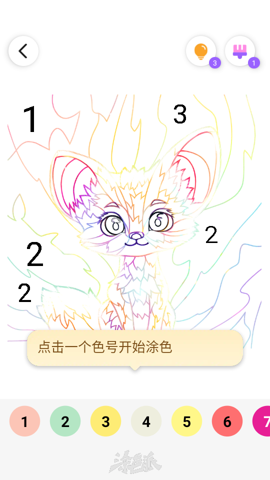 2.进入涂色界面后,根据提示【点击一个色号开始涂色】,选择相应色号开始填充。