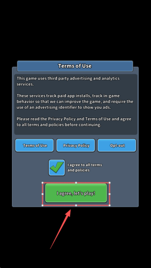 1、同意条款开始游戏。点击“I agree, let's play!”按钮同意条款并开始游戏。