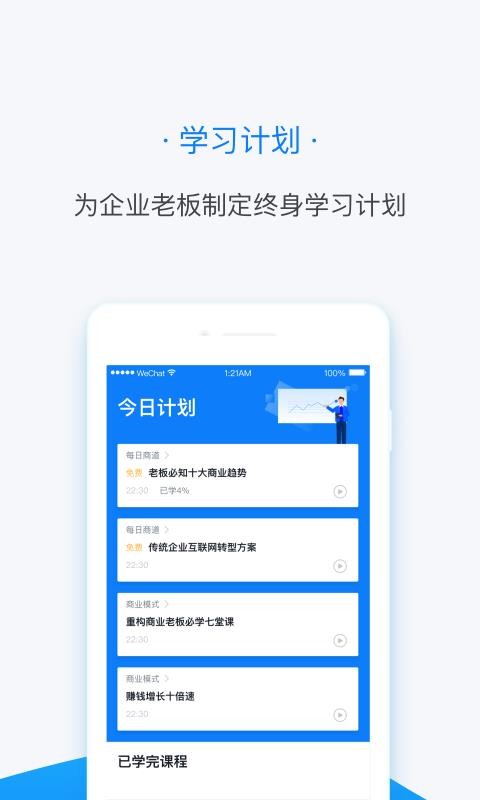 1、详细的学习计划,每天学习的课程可以随时查看到,让你去操作。