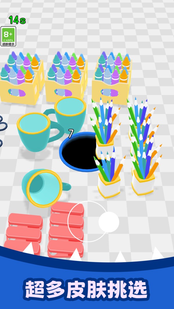 3、成长进化机制:通过不断吞噬物品使黑洞逐渐变大变强,解锁新的挑战内容,体验持续进化的成就感。