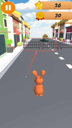 3、然后,操控兔子在26到30米间躲避障碍持续前进。
