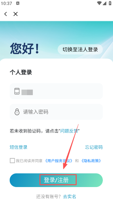 3、在页面输入完信息后点击登录/注册,软件将会自动进行注册