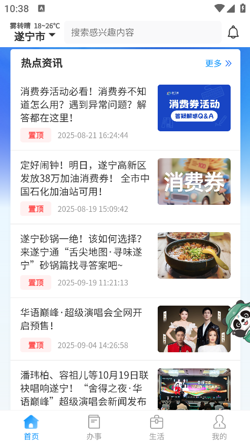 遂宁通APP是一款集政务与便民服务于一体的城市掌上平台,通过数字化手段让市民足不出户即可办理多项高频事项。用户可在线进行社保查询、医院挂号、业务办理等操作,大幅提升办事效率。同时设有新闻资讯版块,实时推送本地新闻动态与活动信息,让市民随时掌握城市发展脉动。遂宁通APP以便捷、高效、实用为特色,是遂宁居民生活与政务服务的贴心助手。