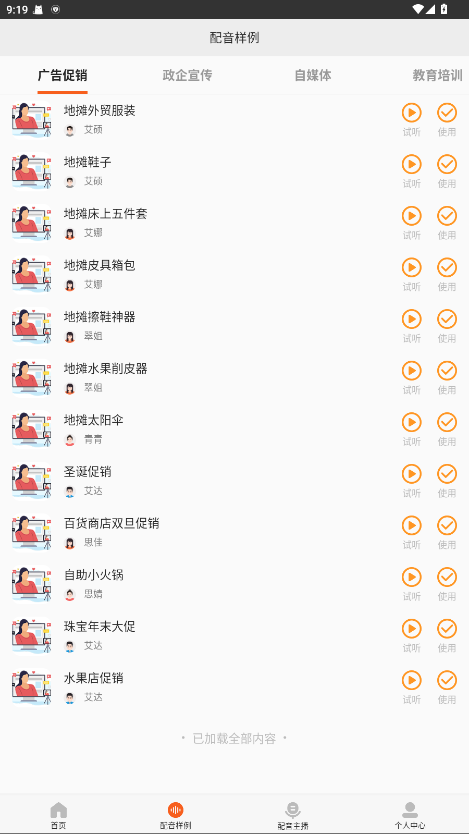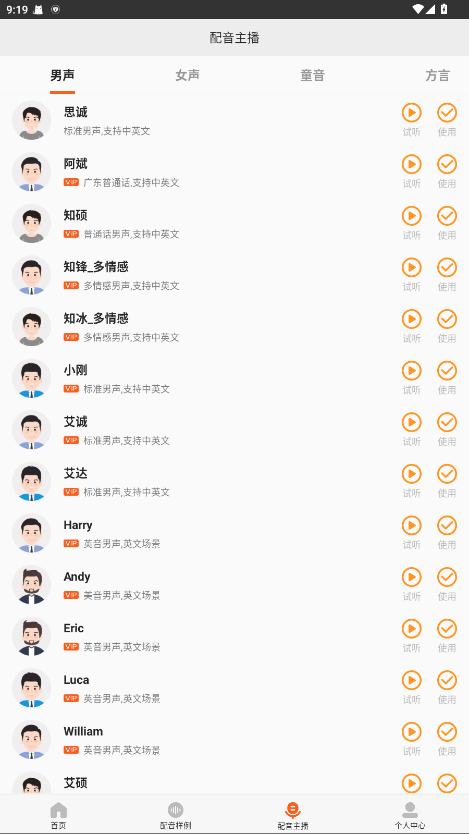 3.每部分内容都可设置不同的主播和参数,在参数设置中可任意调整语速、音量以及语调;