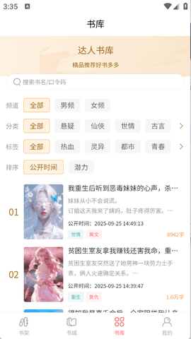 3、男女两大分类小说库实力相当都存有上万本小说,在这里无需忧愁小说不够观看的情况出现。