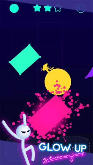 3、从一个霓虹灯色块跳到另一个霓虹灯色块,最后照亮整个五彩缤纷的世界,非常的好玩。