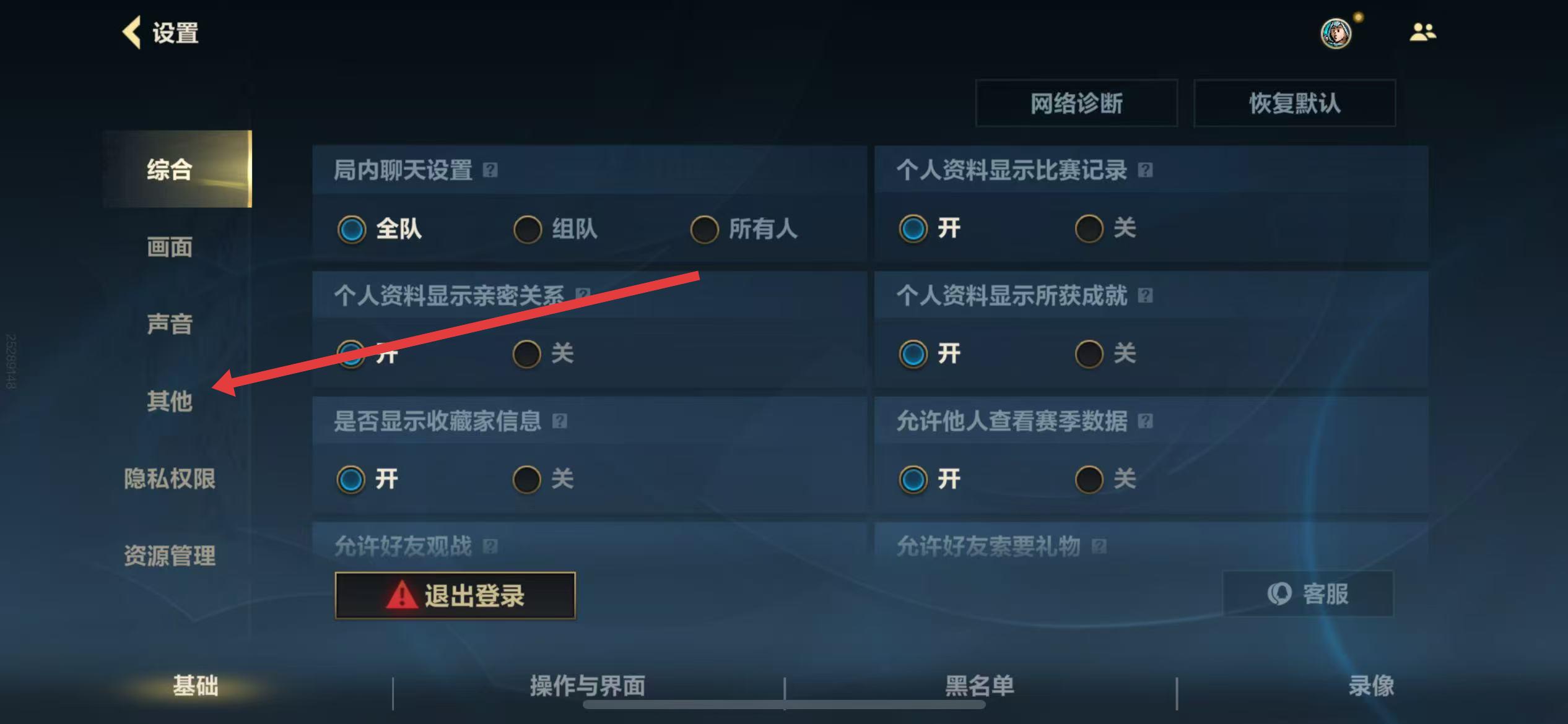 3、在设置界面中,点击左侧菜单栏里的其他选项,进入其他设置页面。