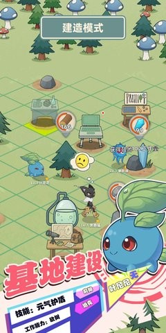 这手游的玩法操作大致可以分为基地搭建扩充以及野外探索战斗两个板块。基地经营发展玩法就是需要用户派遣宠物去基地附近的资源点收集资源来制作或者是收集设备,从而推进基地的发展进度以及解锁更多的内容板块进行尝试。而野外探索板块则是在常见不过的肉鸽爬塔玩法并且通过闯关战斗来收集特殊材料进行设备设计,只不过手游中不需要用户操控角色进行战斗,而是以自走棋的形式让自己的宠物自动完成手游中的关卡挑战。