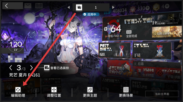 1、在进入到明日方舟主页中,可以点击箭头指向图标,进入主页编辑。