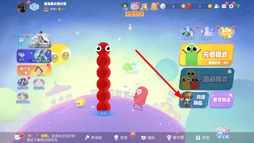 1.打开贪吃蛇大作战游戏,在主界面点击月夜降临进入该模式界面。