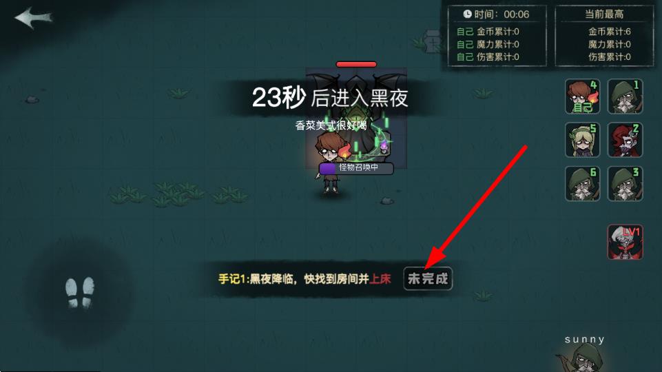 3.进入游戏后,留意屏幕上方时间,若为村民身份,在黑夜降临前快速找到房间并上床,避免被怪物攻击,作为怪物,则在黑夜降临后去攻击村民。
