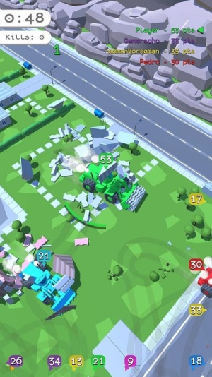 4、成长机制清晰:通过摧毁建筑可让挖掘机变大变强,实力提升直观可见,激发玩家持续对战、突破自身实力的欲望。