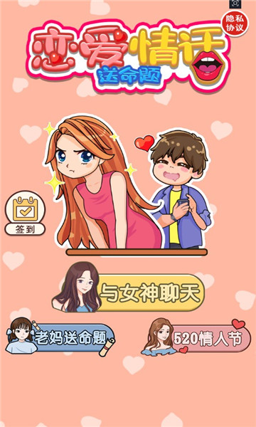 《恋爱情话送命题》在这款游戏中玩家可以尝试与你的在线女神进行模拟处对象,通过模仿与女神之间的对话,赢得女生的心,而且这款游戏中也是有很多的交友聊天话术,是以爱情为主题的休闲娱乐游戏,都是卡通的游戏角色,给玩家带来的游戏的漫画画风。