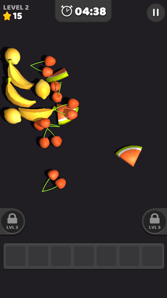 2.点击上方相同的物品移动到下方,如果有三个相同的物品即可进行消除。