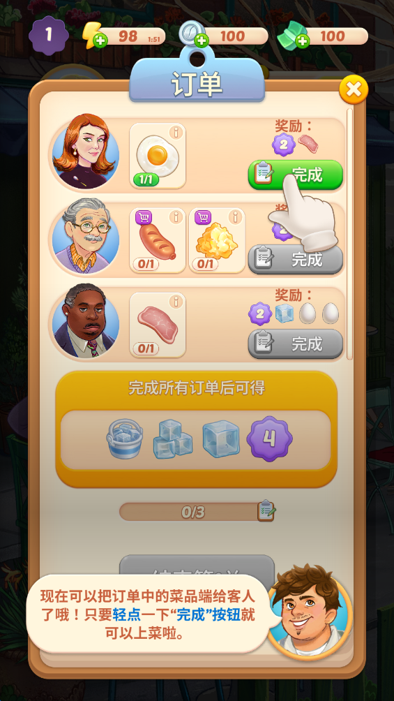 4.完成上方顾客的订单。