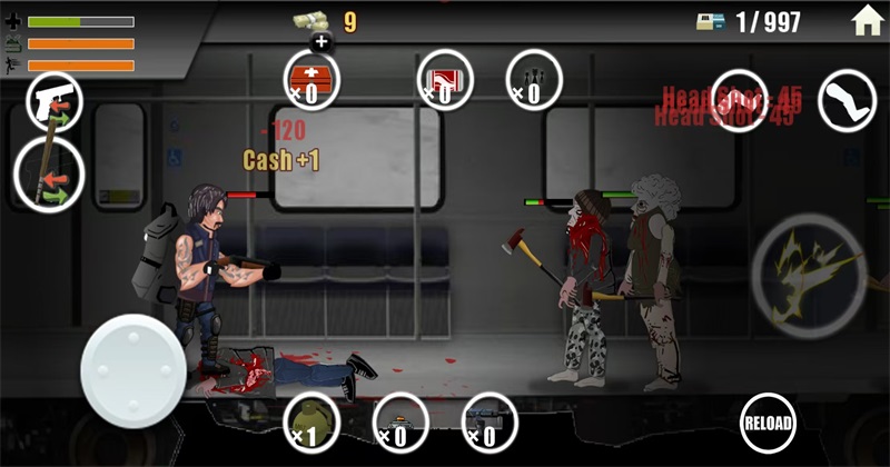 5.用腿可以攻击地面的丧尸给于致命一击。