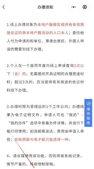 3、进入办理界面后,仔细阅读办理须知,随后点击“开始办理”。查看并核对自己的个人信息,在“用途”栏选择自己开具证明的实际用途,如就业使用,选择“就业”即可