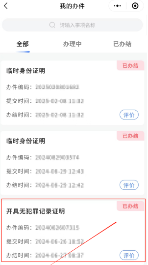 5、成功提交后点击“我的办件”进入办件详情。若仍在办理中,将仅显示办件信息。