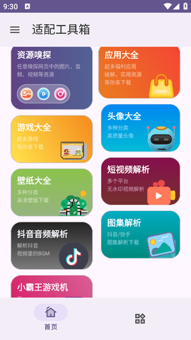 1、首页这里都是常用的工具,里面既有视频解析、图片解析,又有应用、手游大全,可以进去免费下载。